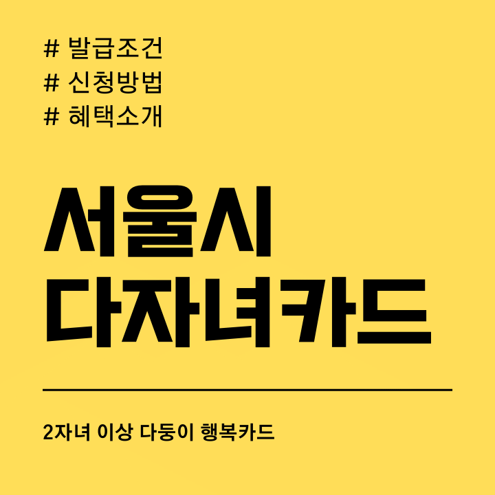 아이를 키운다는 것은 경제적으로도 많은 부담이 따르기 마련입니다. 서울시에서는 경제적 부담을 덜기 위해 2자녀 이상 가정에 다양한 다자녀혜택을 제공하고 있답니다. 그 중 대표적인 다자녀카드 혜택 다둥이행복카드에 발급조건과 신청방법, 혜택에 대하여 자세히 알려드리겠습니다.