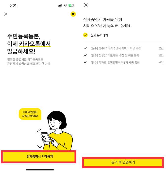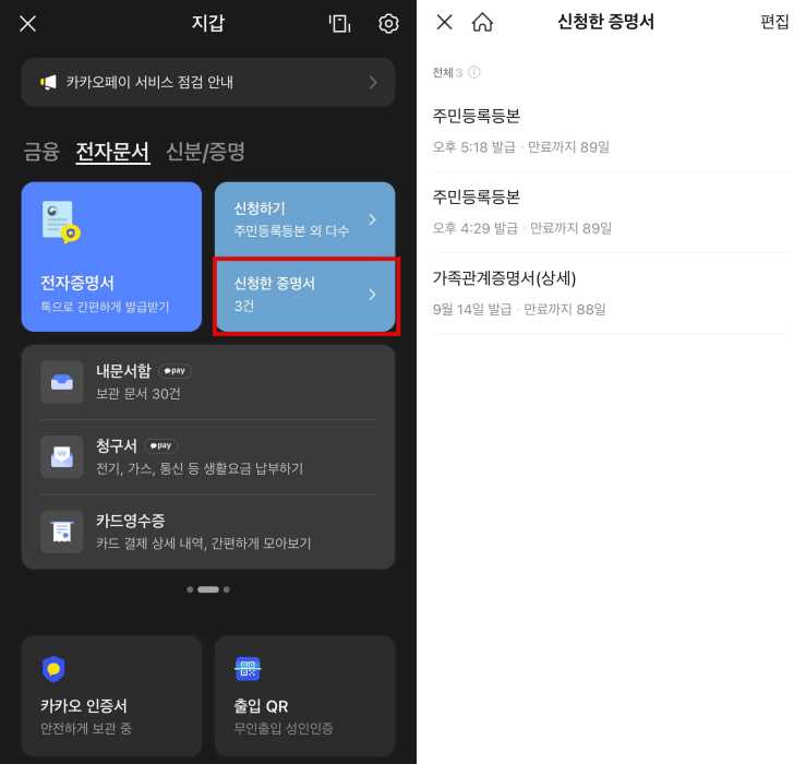 카카오톡 전자증명서