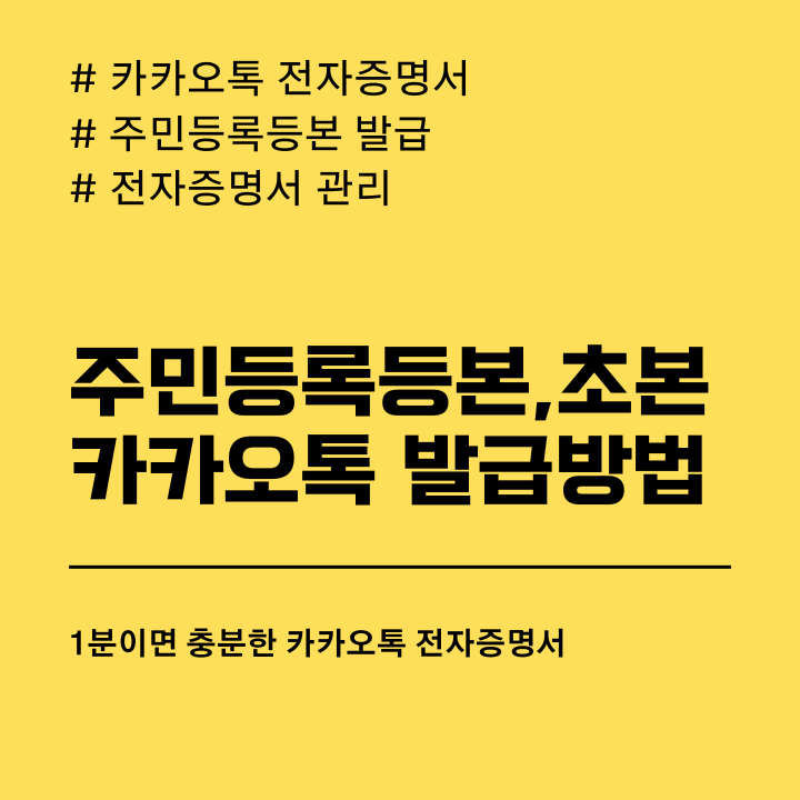 이제 주민등록등본 발급을 위해 주민센터를 찾아가실 필요가 없습니다. 카카오톡 통하여 1분이면 완료된답니다. 주민등록등본 외에도 65가지 증명서를 발급 가능합니다. 카카오톡 전자증명서 발급방법과 저장, 제출하는 방법을 알려드리겠습니다.